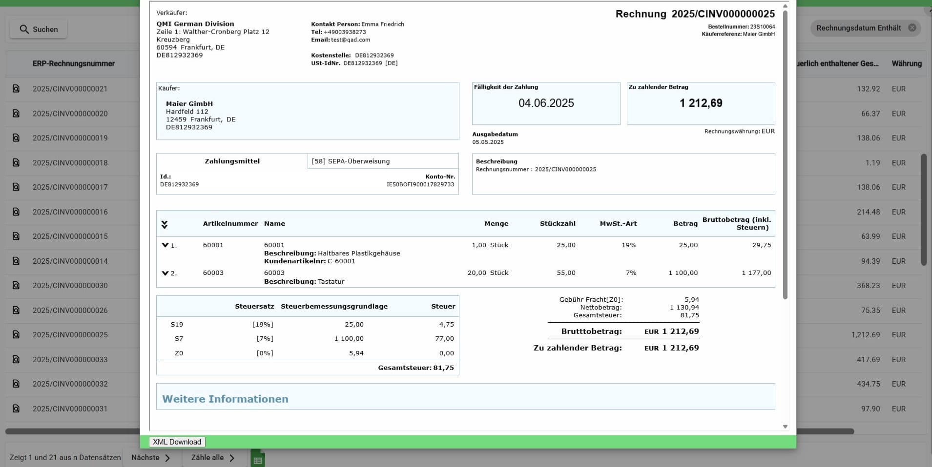 Zusätzlich werden in einem separaten Mandanten zusätzlich ca. 6.000 Eingangsrechnungen pro Jahr verarbeitet.