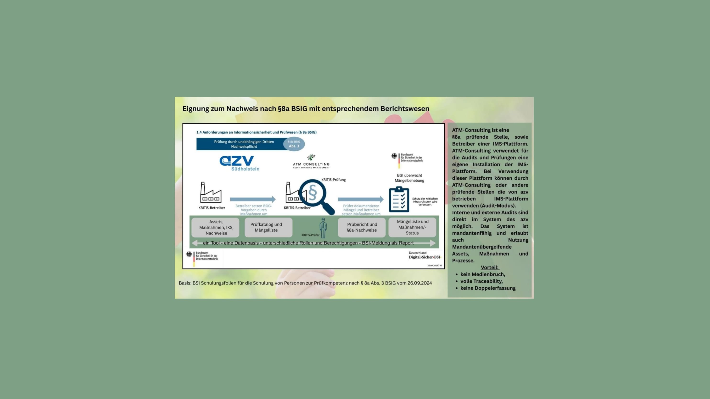 Eignung zum Nachweis nach §8a BSIG mit entsprechendem Berichtswesen