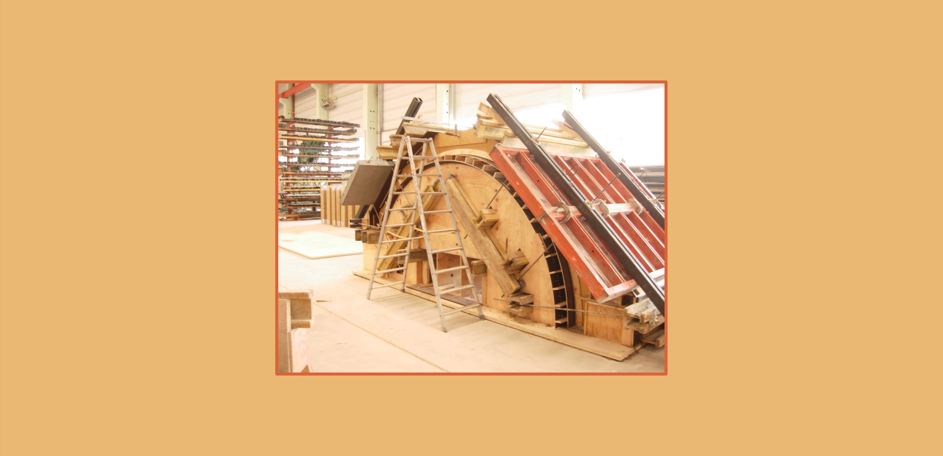 Aus wirtschaftlichen Gründen ist eine Präfabrikation auf der Baustelle angedacht für die xx (Anzahl) Stampflehmelemente in folgenden ca. Abmessungen: ca. Breite x Tiefe = 3,1m x 1,0 m mit einer Stichhöhe von 0,38m und einer Materialstärke von 0,22m.