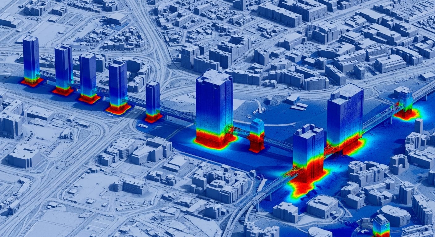 Hyper-lokale Präzision (Street-Level Resolution): Wir nutzen KI-gestützte GEO-Modelle und Satellitenintelligenz (Copernicus, ERA5), um Gefahren wie Hitze, Überschwemmung und Luftqualität auf Ebene des einzelnen Grundstücks und des Straßenabschnitts zu bewerten. Dies ermöglicht eine hoche Präzision bei der Planung von Anpassungsmaßnahmen (z.B. genaue Platzierung von Entsiegelung oder Grünflächen).